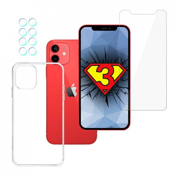 iPhone 12 Mini SET - 3mk HardGlass, 3mk Clear Case, 3mk Protection Lens